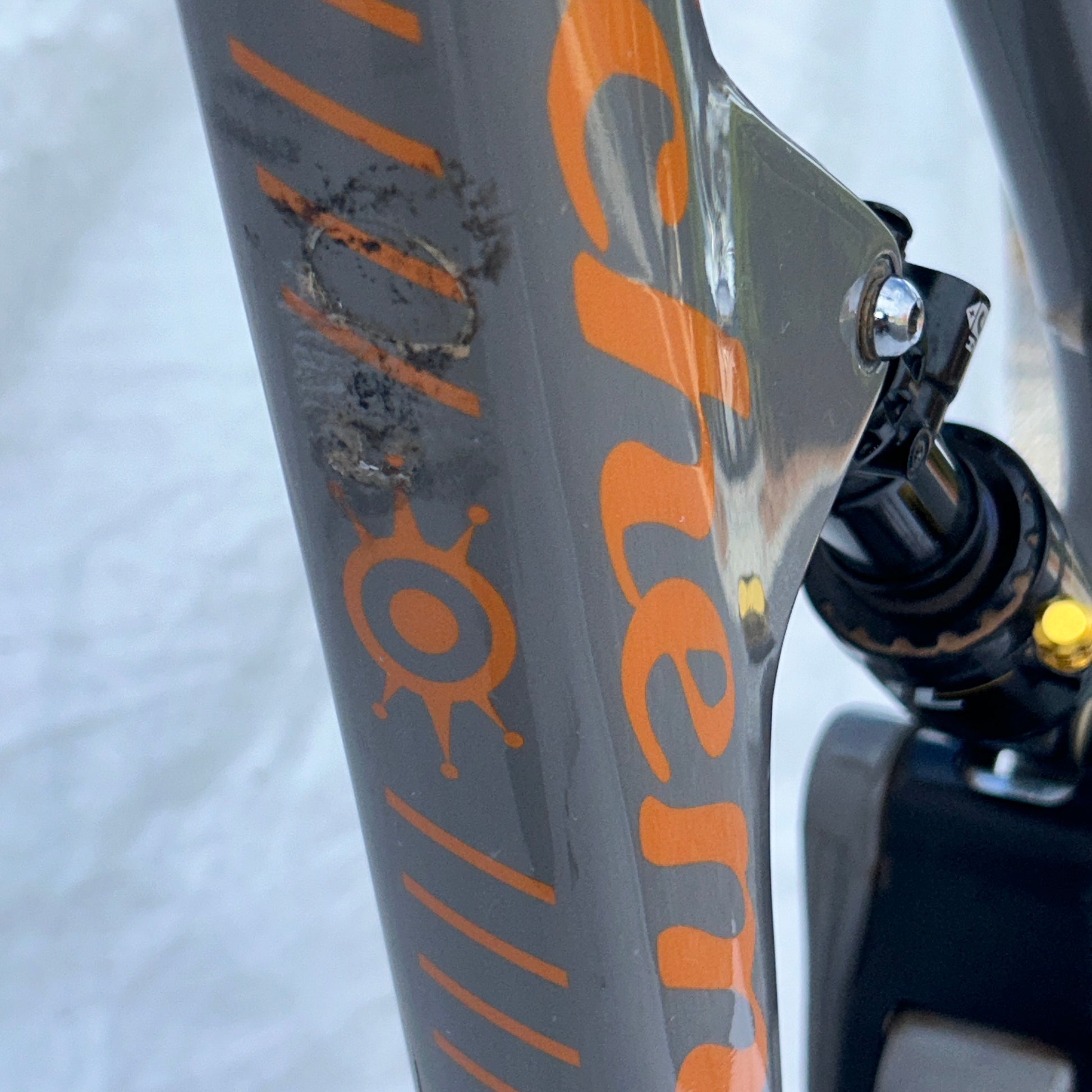 The Bike is fully cover in clear cover or wrap, most scratches you can see are in the plastic cover and the dirt showing is just on the edge of the wrap with dirt or dust. You are welcome to remove the ride wrap to make this frame look like new, we decide to leave it after spending hours on installing the protector.