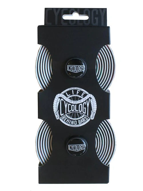 Comes in a set of two bar tape rolls with matching Cycology end plugs to give your bike an original eye catching finish.