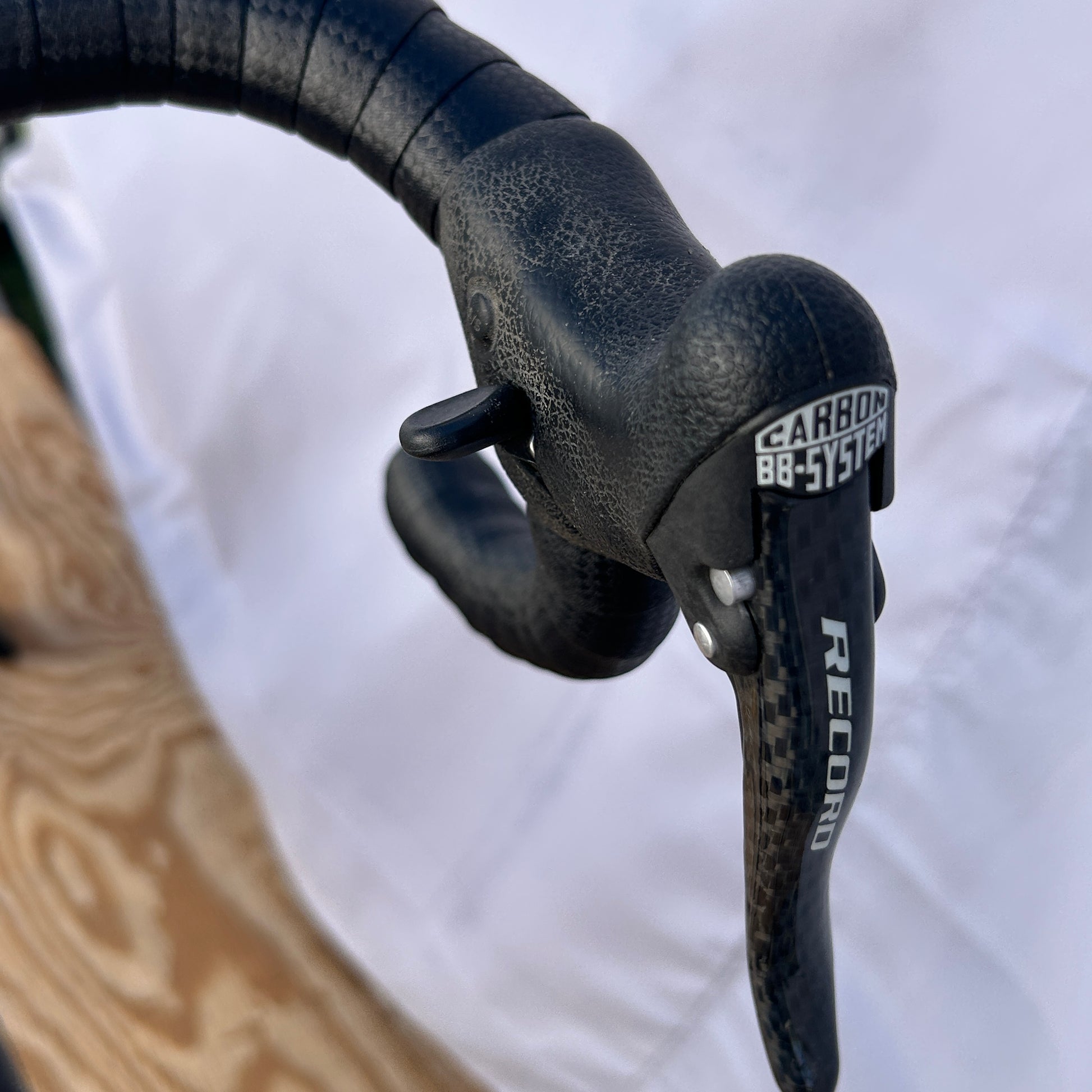 Seven Cycles Titanium Campy Record 56 cm road bike. This frame is the Axiom custom build for the original owner, a geometry a little more comfortable with higher head tube and shorter top tube than another Axiom for racing.