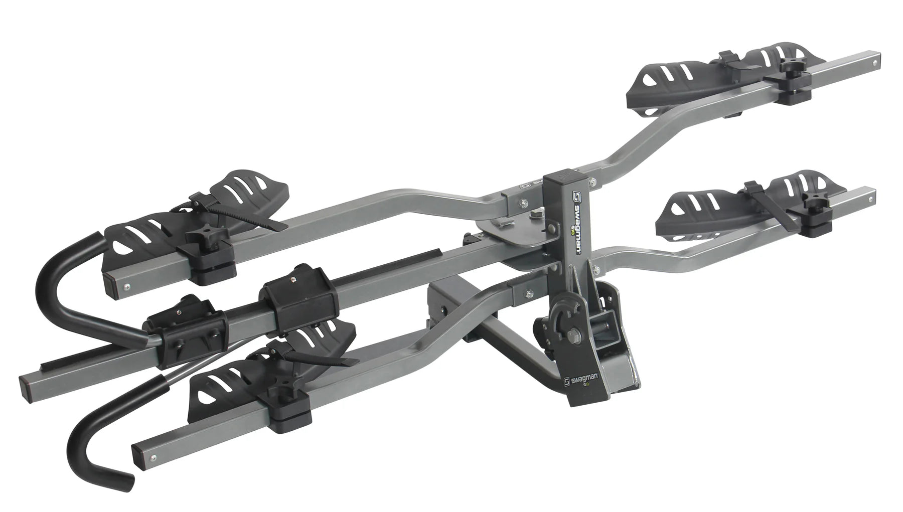 The Swagman | G10 hitch mount bike rack will get your bikes to their destination in style! With a carrying capacity of 45lbs. per bike and optional Fat Bike tire trays available, the G10 is super functional while retaining elegant design. The G10 comes with locking ratchet hooks and a locking hitch pin, and also has the ability to tilt away from your vehicle with bikes mounted for rear vehicle access and folds up when not in use.